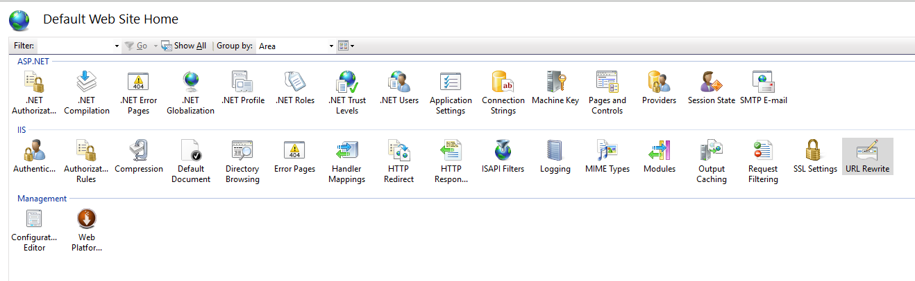 2. In the admin console for this website, double click on the URL Rewrite option: