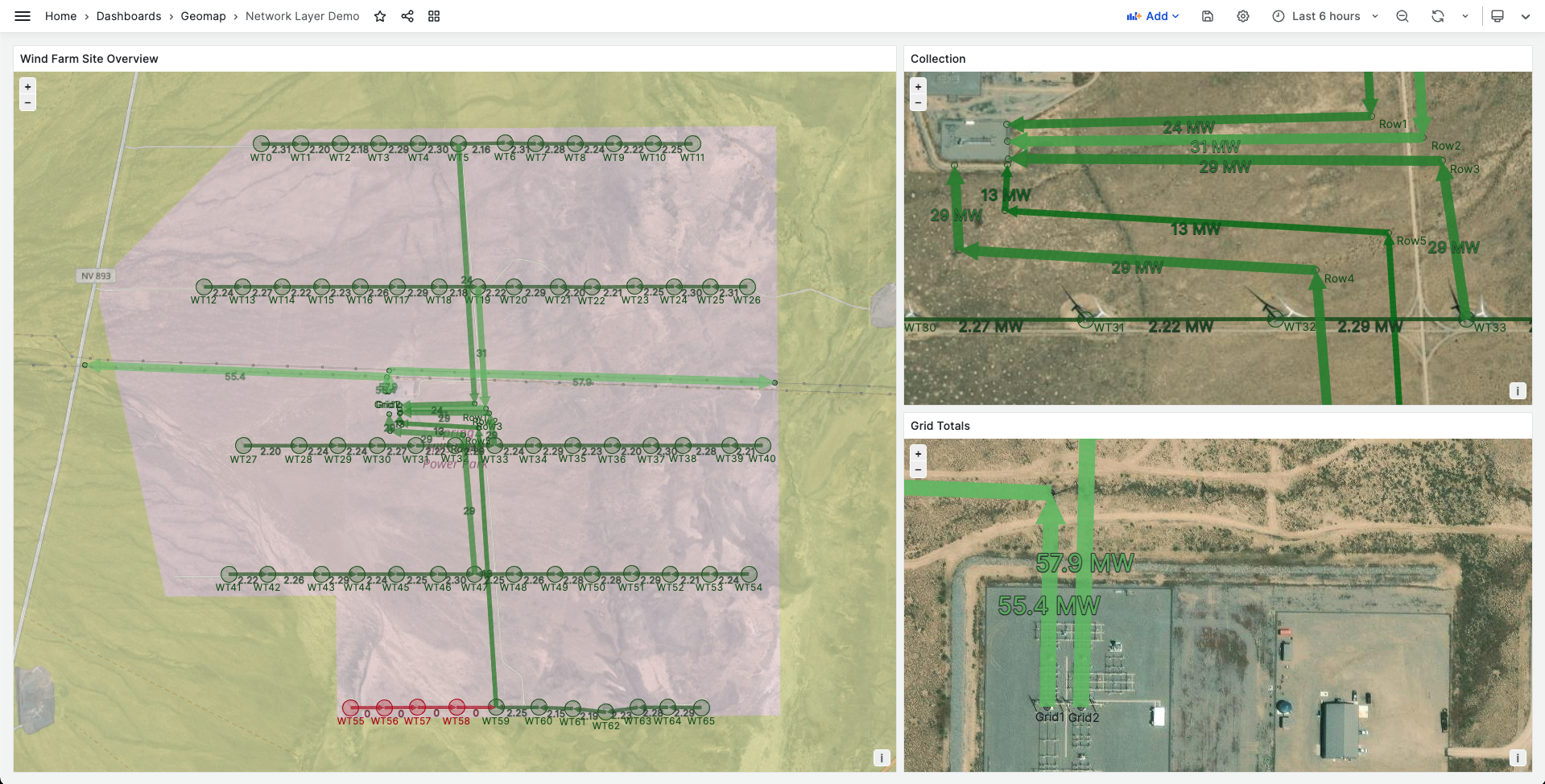 You can now display network data in the Geomap visualization by using the new beta Network layer. This layer supports the same data format as the Node graph visualization.