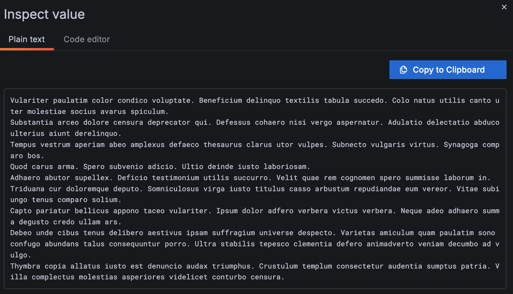We’ve improved the inspect value experience in table visualizations with the addition of tabs in the Inspect value drawer: Plain text and Code editor.